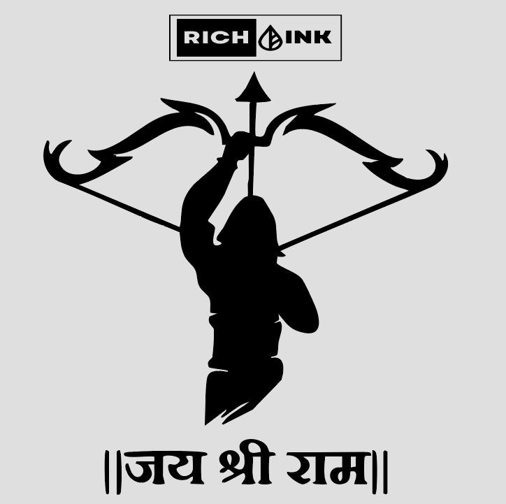 "A bold design of Ram Ji with drawn bow—symbolizing clarity, focus, and strength in your beliefs"